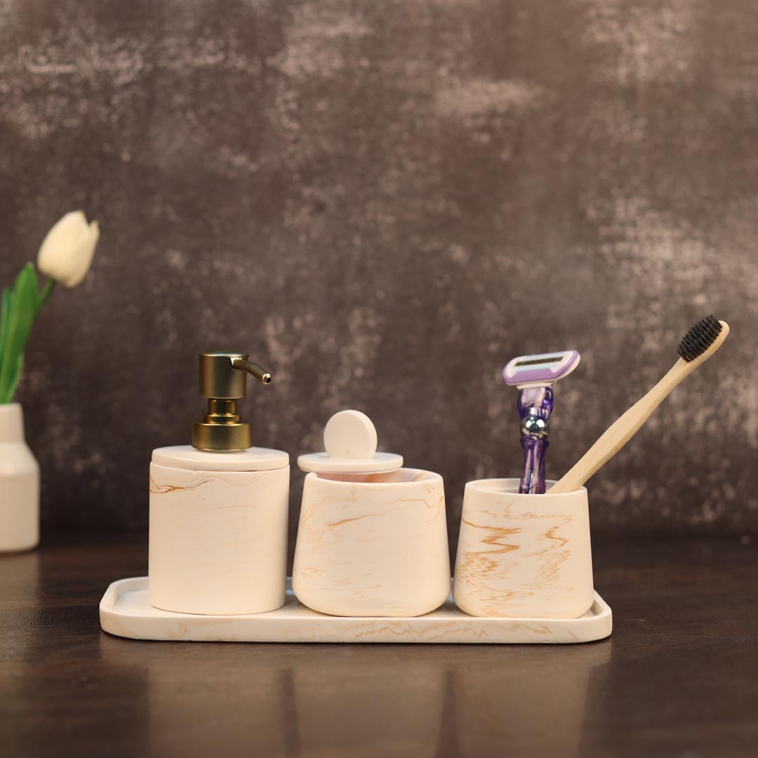 Transform your bathroom into a tranquil oasis with the Aqua Bliss. This elegant collection features a sleek tray, a stylish soap dispenser, a modern toothbrush holder, and a versatile accessories box. Designed in serene aqua tones, each piece blends functionality with a touch of luxury, perfect for creating a calming and coordinated space. Ideal for both contemporary and classic bathroom designs, this set adds a refreshing and sophisticated accent to your daily routine.